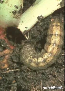 地老虎為夜盜危害型害蟲,比較喜歡濕潤的黏質(zhì)類土壤,大多群集在植株的葉片及莖上,對植物的危害非常大。3齡后地老虎分散進行活動,白天基本潛伏在土表,夜間則出土為害植株,可咬斷幼苗的根莖或者咬食還沒有出土的植株幼苗。地老虎類害蟲主要為害幼株,通過切斷植株的幼苗根莖進行取食,主莖硬化后也可以咬食植株生長點,對園林植物的正常生長危害較大。在地老虎成蟲期需要及時進行防治,若防治不及時,對植物的葉片、嫩芽危害比較嚴重。